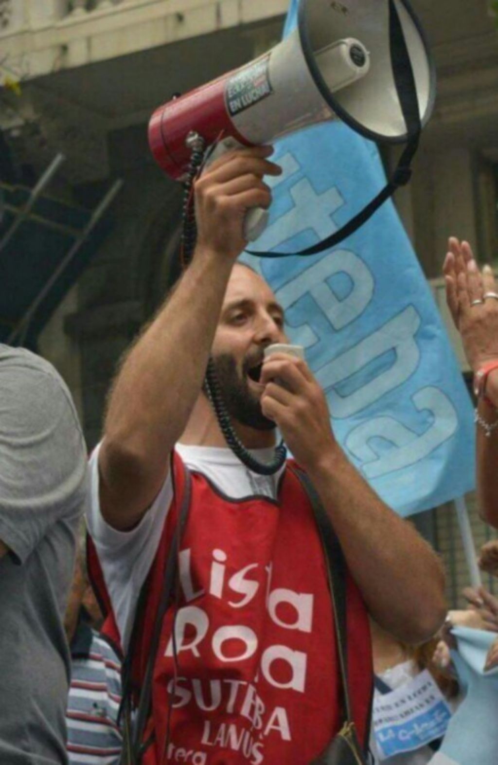 «Como clase obrera sigue dando luchas en distintos sindicatos como el que hoy me toca integrar, el Sipreba. Luego de más de tres años de este gobierno, con más de 3.000 periodistas despedidos, salarios a la baja y flexibilización laboral, seguiremos peleando y acompañando a toda la clase trabajadora.»