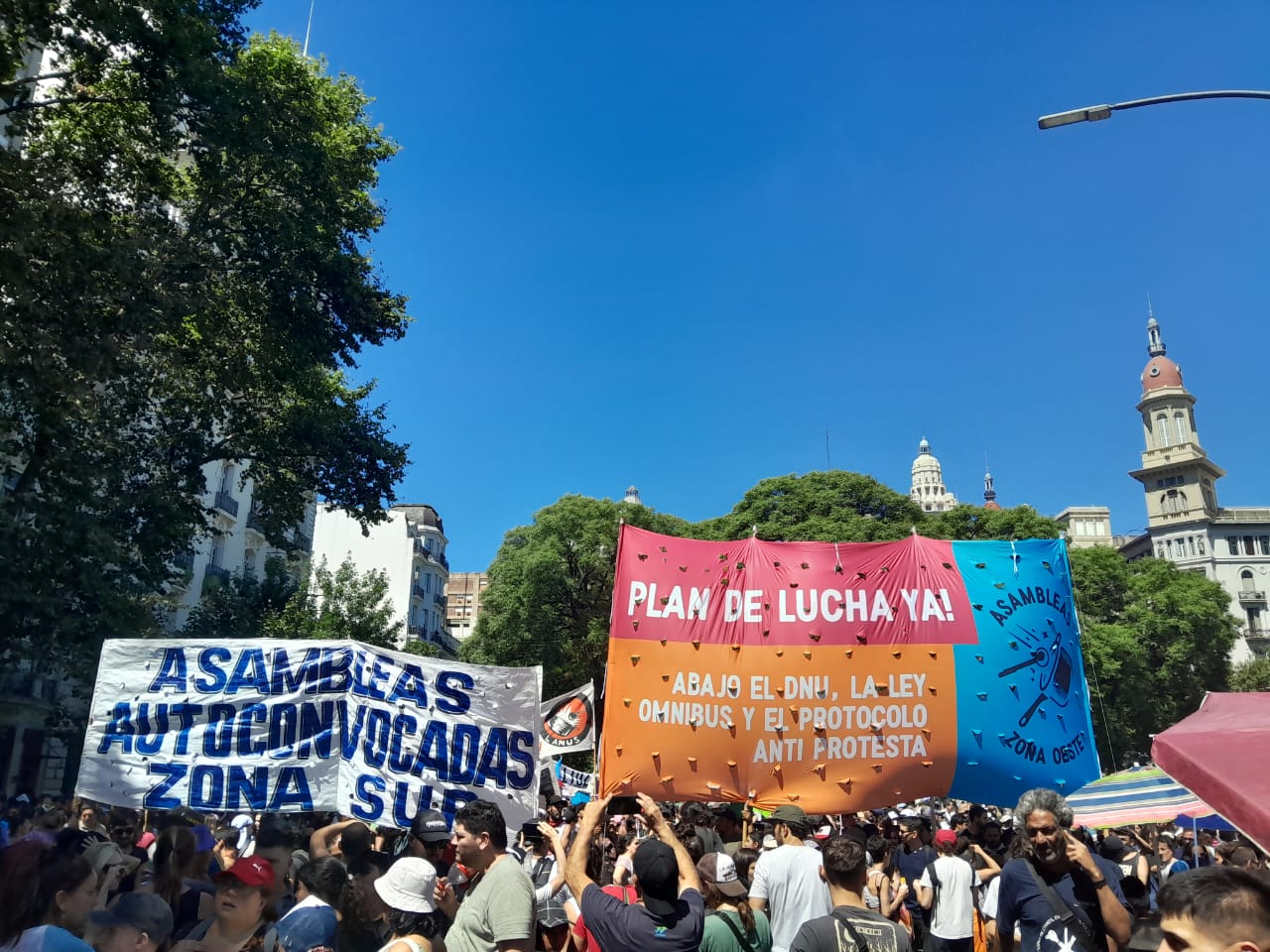 Con composiciones heterogéneas, distintas experiencias de activismo confluyen en estos espacios que, de a poco van tomando la forma de instancias de deliberación y coordinación de la lucha popular contra el DNU, la ley Ómnibus y el protocolo represivo.